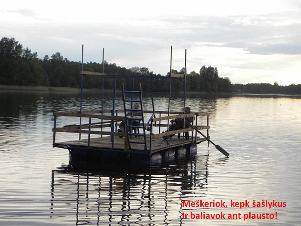 2. 100 m PAKRANTĖS IR DAUG VANDENS PRAMOGŲ: valtys, plaustas iškyloms ir žvejybai, katamaranas, vandens aerobika, du lieptai saulės vonioms ir meškeriojimui.